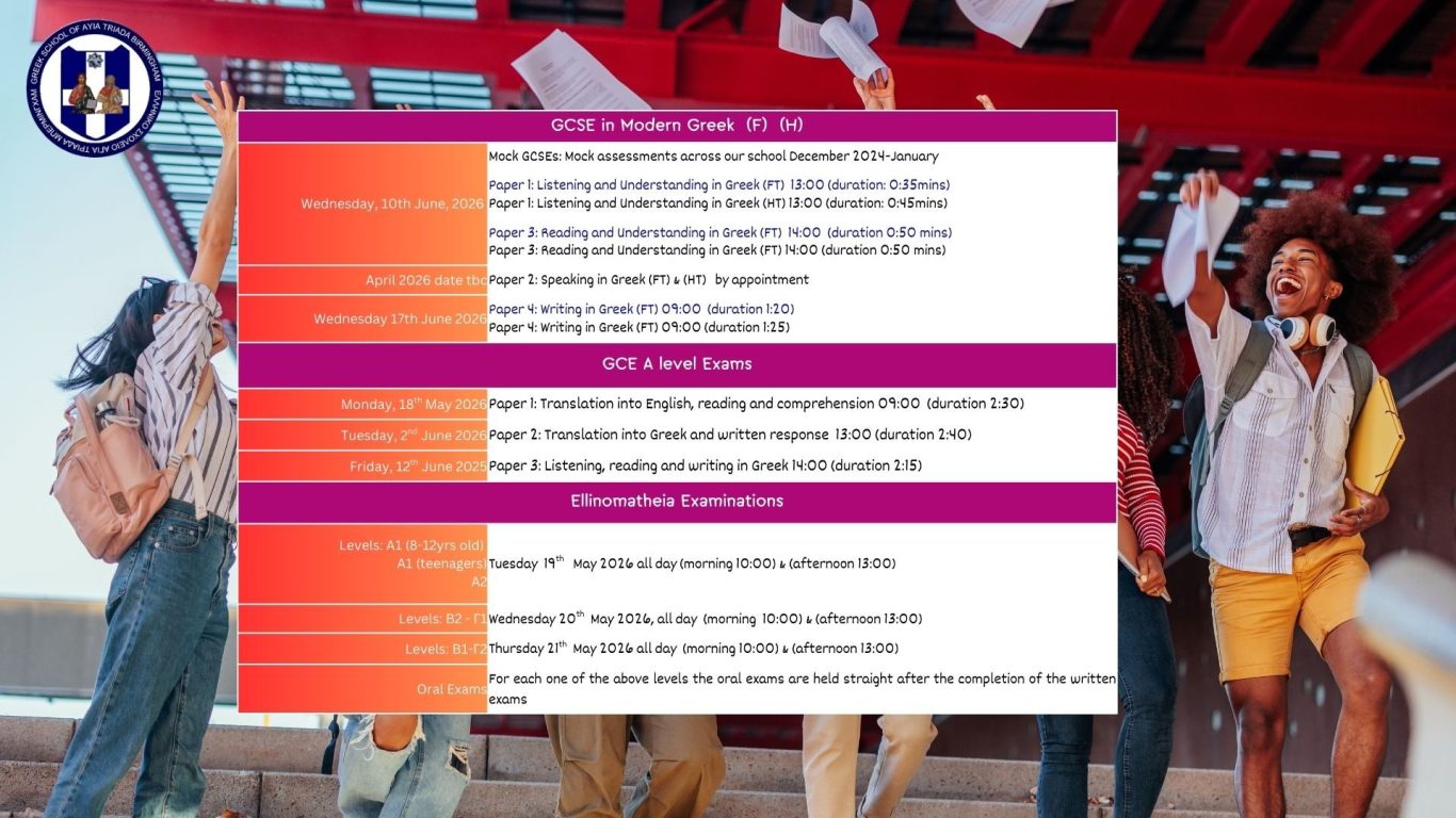 May and June are amonst the most busy and stressful at the same time, months of the school year, due to the exams being held during those two months. The timetable below is final for summer 2026
